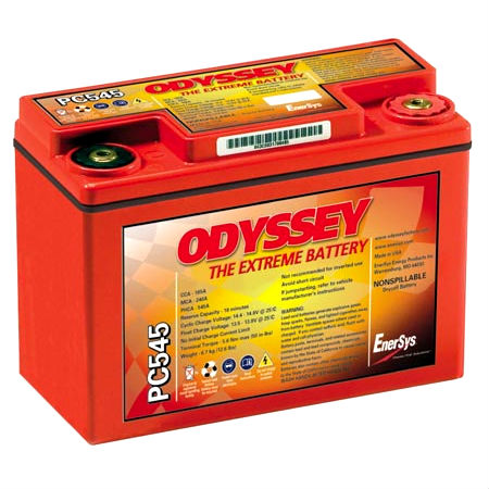 All Odyssey PC545 aftermarket motorcycle batteries are made in USA. It is a 12V battery and has cold cranking amps of 150 and an amp hour rating of 13. This motorcycle battery comes with a full 24 Mo free motorcycle battery replacement warranty.