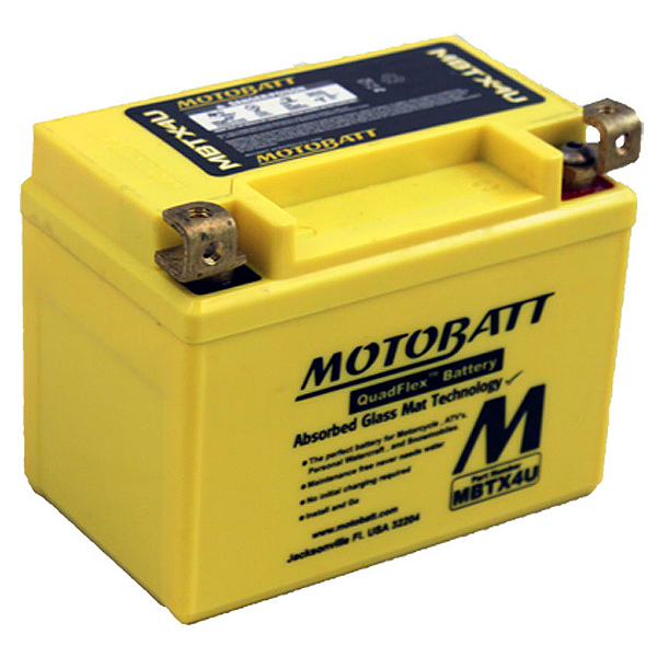 The MotoBatt MBTX4U Sealed AGM motorcycle battery is factory activated and comes ready to install in your small engine application (i.e. ATV, utility vehicle, motorcycle, lawn tractor, generator). Their proprietary Quadflex terminal design and advanced spacer system allow MotoBatt to reduce over 190 original equipment (OE) part numbers down to just 36 making your life a whole lot easier!