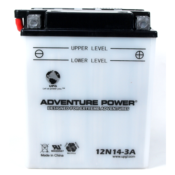All 12N14-3A Adventure Power aftermarket motorcycle batteries are made in Vietnam. It is a 12V battery and has cold cranking amps of 128 and an amp hour rating of 14. Some other manufacturer part numbers that relate to this item are: 12N14-3A,MBTX14AU,UTX14AHL,UTX14AHL-BS.