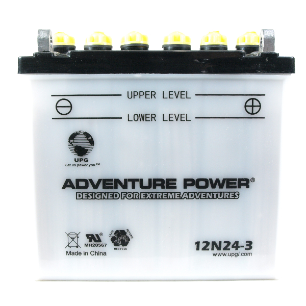 All 12N24-3 Adventure Power aftermarket motorcycle batteries are made in Vietnam. It is a 12V battery and has cold cranking amps of 218 and an amp hour rating of 24. Some other manufacturer part numbers that relate to this item are: 12N24-3,MBTX30U,UIX30L.