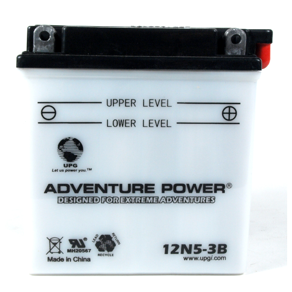 All 12N5-3B Adventure Power aftermarket motorcycle batteries are made in Vietnam. It is a 12V battery and has cold cranking amps of 40 and an amp hour rating of 5. Some other manufacturer part numbers that relate to this item are: 12N5-3B,MB5U,UT5AL-BS,APP07L2-BS12.