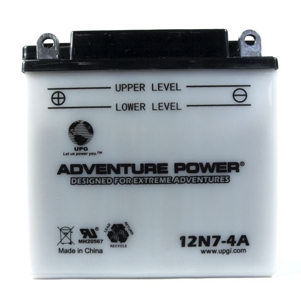 All 12N7-4A Adventure Power aftermarket motorcycle batteries are made in Vietnam. It is a 12V battery and has cold cranking amps of 74 and an amp hour rating of 7. Some other manufacturer part numbers that relate to this item are: 12N7-4A,MB9U,UB7-A,UTX7E-BS.