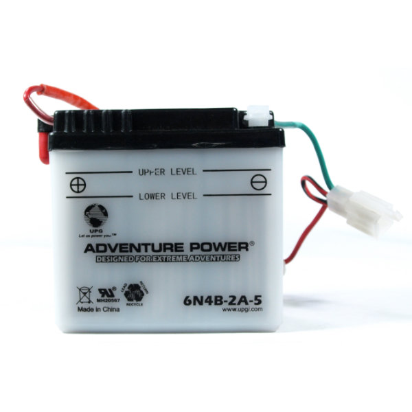 All 6N4B-2A-5 Adventure Power aftermarket motorcycle batteries are made in Vietnam. It is a 6V battery and has cold cranking amps of and an amp hour rating of 4. Some other manufacturer part numbers that relate to this item are: 6N4B-2A-5.
