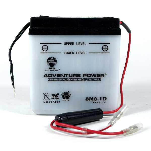 All 6N6-1D Adventure Power aftermarket motorcycle batteries are made in Vietnam. It is a 6V battery and has cold cranking amps of and an amp hour rating of 6. Some other manufacturer part numbers that relate to this item are: 6N6-1D,MBT6N6.