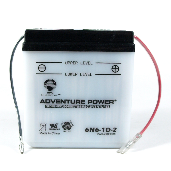 All 6N6-1D-2 Adventure Power aftermarket motorcycle batteries are made in Vietnam. It is a 6V battery and has cold cranking amps of and an amp hour rating of 6. Some other manufacturer part numbers that relate to this item are: 6N6-1D-2,MBT6N6.
