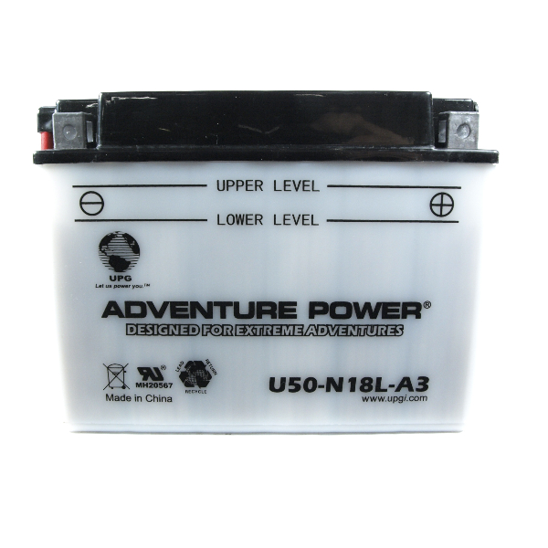 All U50-N18L-A3 Adventure Power aftermarket motorcycle batteries are made in Vietnam. It is a 12V battery and has cold cranking amps of 260 and an amp hour rating of 20. Some other manufacturer part numbers that relate to this item are: MBTX24U,U50-N18L-A3,UTX24HL.