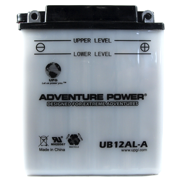 All UB12AL-A Adventure Power aftermarket motorcycle batteries are made in Vietnam. It is a 12V battery and has cold cranking amps of 165 and an amp hour rating of 12. Some other manufacturer part numbers that relate to this item are: MB12U,UB12AL-A,UT12CL.