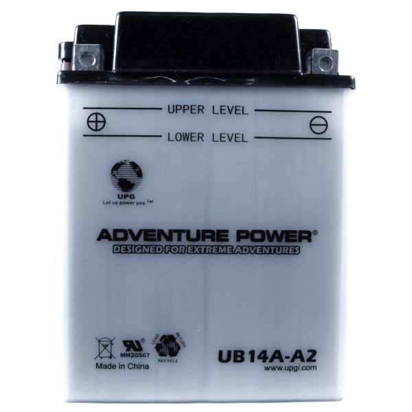 All UB14A-A2 Adventure Power aftermarket motorcycle batteries are made in Vietnam. It is a 12V battery and has cold cranking amps of 190 and an amp hour rating of 14. Some other manufacturer part numbers that relate to this item are: MBTX14AU,UB14A-A2,UTX14AH,UTX14AH-BS,YTX14AH.