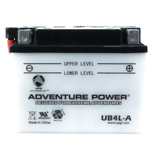 All UB4L-A Adventure Power aftermarket motorcycle batteries are made in Vietnam. It is a 12V battery and has cold cranking amps of 32 and an amp hour rating of 4. Some other manufacturer part numbers that relate to this item are: MBTX4U,UB4L-A,UT4AL-BS,YTX4L.