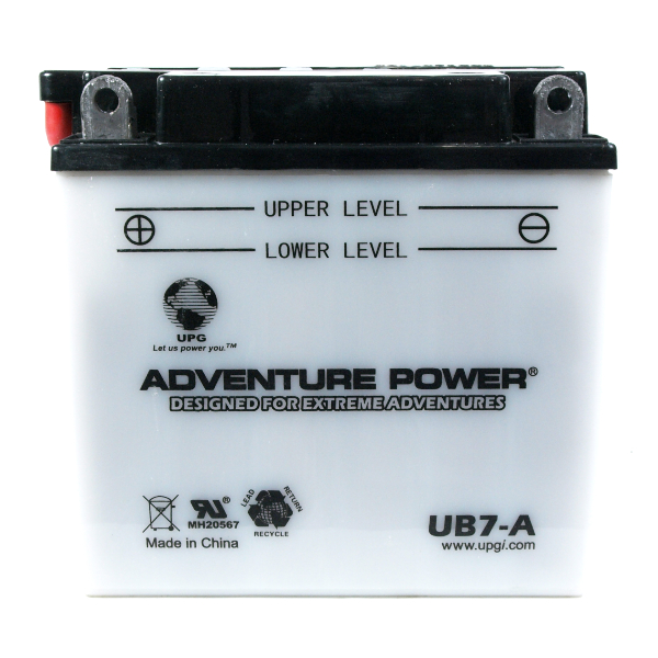 All UB7-A Adventure Power aftermarket motorcycle batteries are made in Vietnam. It is a 12V battery and has cold cranking amps of 55 and an amp hour rating of 8. Some other manufacturer part numbers that relate to this item are: 12N7-4A,MB9U,UB7-A.