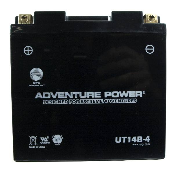 All Adventure Power UT14B-4 aftermarket motorcycle batteries are made in Vietnam. It is a 12V battery and has cold cranking amps of 145 and an amp hour rating of 12. This motorcycle battery comes with a full 12 Mo. free motorcycle battery replacement warranty.