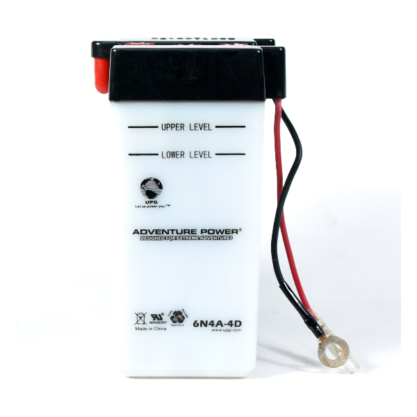 This 6N4A-4D motorcycle battery is a Flooded Conventional type. This means you will need to add acid to the battery and then charge with an appropriate charger. It is open to the environment and can leak acid on your new chrome job if you lay your bike down or overcharge the battery. The Yuasa 6N4A-4D motorcycle battery usually does not ship with the acid pack and acid will often need to be purchased locally. Some may refer to this battery by the manufacturer stock code which is YUAM26A4B.