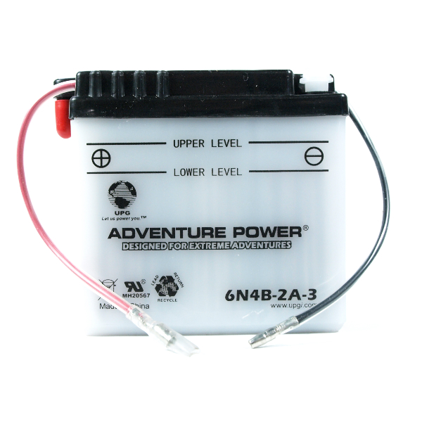 This 6N4B-2A-3 motorcycle battery is a Flooded Conventional type. This means you will need to add acid to the battery and then charge with an appropriate charger. It is open to the environment and can leak acid on your new chrome job if you lay your bike down or overcharge the battery. The Yuasa 6N4B-2A-3 motorcycle battery usually does not ship with the acid pack and acid will often need to be purchased locally. Some may refer to this battery by the manufacturer stock code which is YUAM26B43.