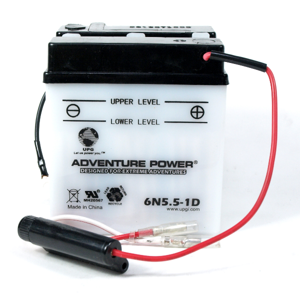 This 6N5.5-1D motorcycle battery is a Flooded Conventional type. This means you will need to add acid to the battery and then charge with an appropriate charger. It is open to the environment and can leak acid on your new chrome job if you lay your bike down or overcharge the battery. The Yuasa 6N5.5-1D motorcycle battery usually does not ship with the acid pack and acid will often need to be purchased locally. Some may refer to this battery by the manufacturer stock code which is YUAM2655B.
