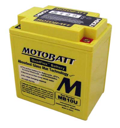 The CB10L-B Flooded High Performance by GS Yuasa is known as a Flooded High Performance motorcycle battery. This means it is open to the environment and has a vent tube that can leak acid. The user will be required to fill the battery with acid (must locate locally) and then charge for the first time prior to use. From time to time you will then need to add distilled water to help maintain the electrolyte balance above the minimum threshold.