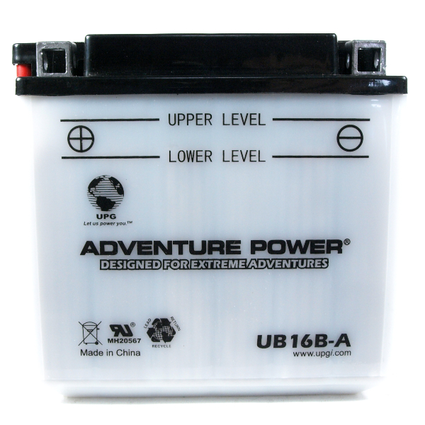 The CB16B-A Flooded High Performance by GS Yuasa is known as a Flooded High Performance motorcycle battery. This means it is open to the environment and has a vent tube that can leak acid. The user will be required to fill the battery with acid (must locate locally) and then charge for the first time prior to use. From time to time you will then need to add distilled water to help maintain the electrolyte balance above the minimum threshold.