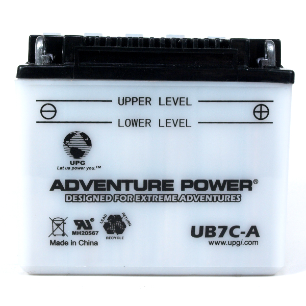 The CB7C-A Flooded High Performance by GS Yuasa is known as a Flooded High Performance motorcycle battery. This means it is open to the environment and has a vent tube that can leak acid. The user will be required to fill the battery with acid (must locate locally) and then charge for the first time prior to use. From time to time you will then need to add distilled water to help maintain the electrolyte balance above the minimum threshold.